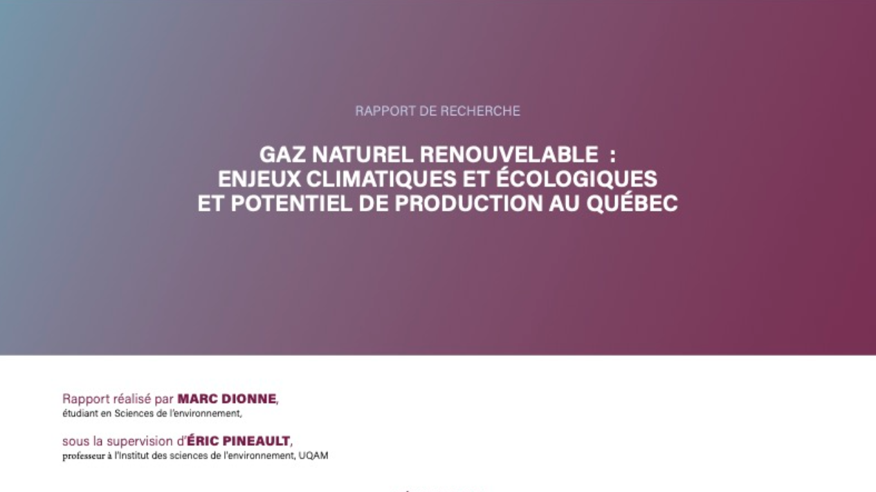 Gaz naturel renouvelable : enjeux climatiques et écologiques et potentiel de production au Québec